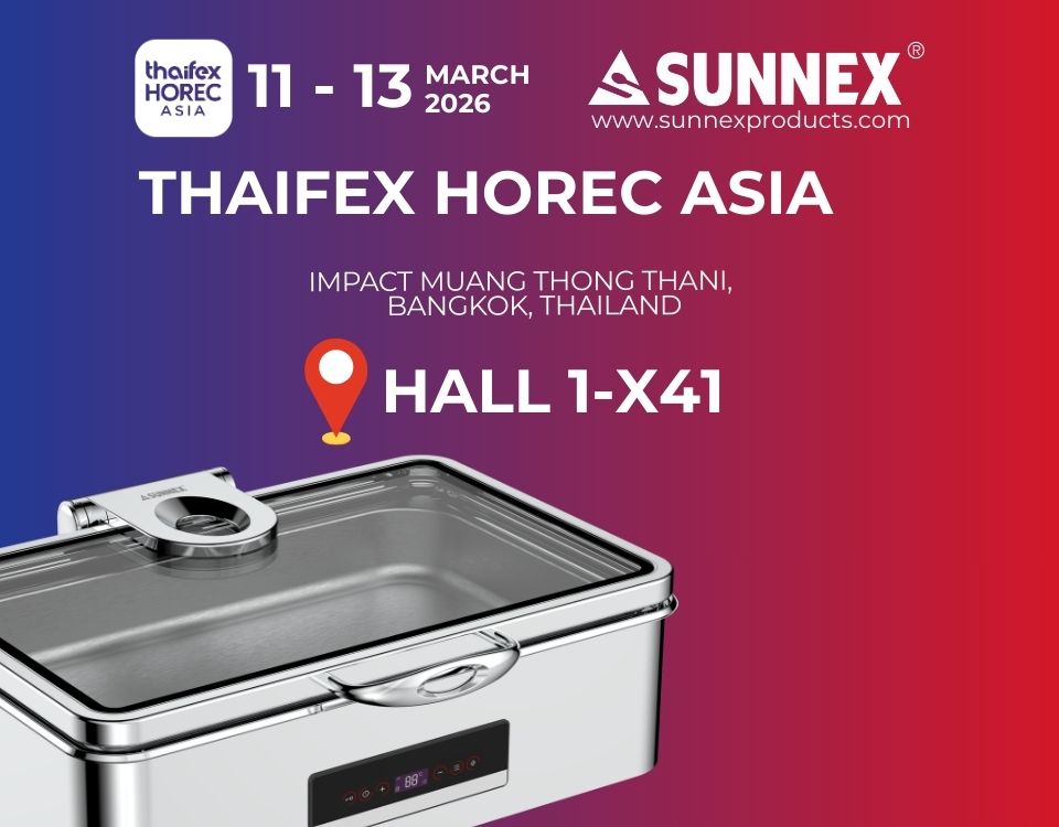 Sunnex has a long tradition of developing products under our own brand and we are constantly launching new and better products for the catering trade. In the trade of various catering items such as electrical appliances, chafing dish sets, teaware, and kitchen tools, the Sunnex brand is known worldwide for its quality and value.