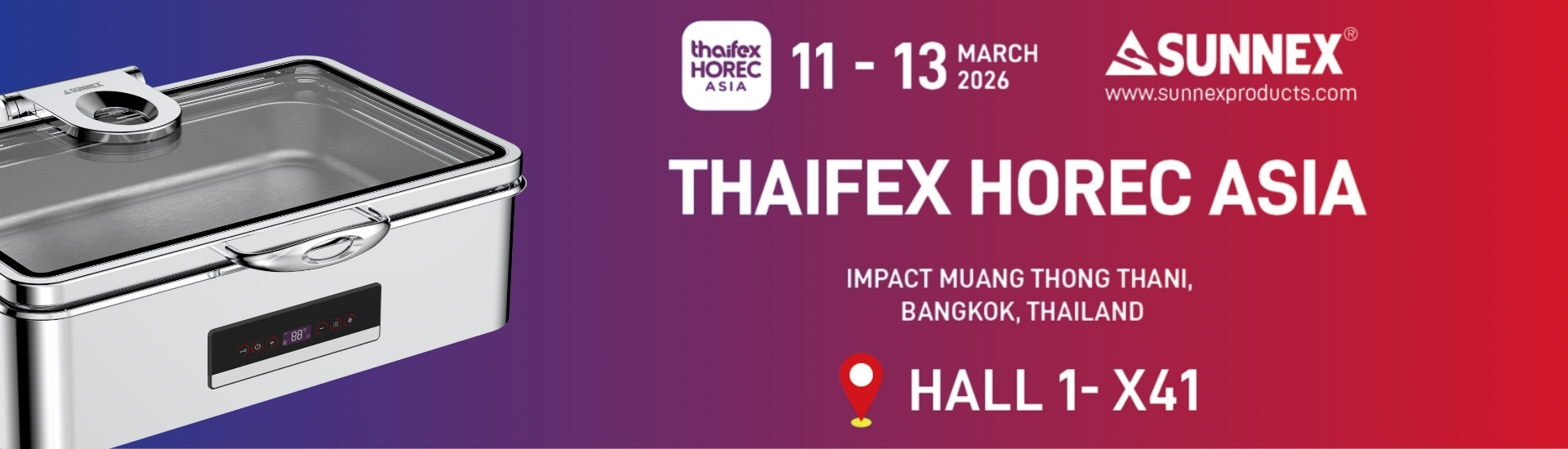 Sunnex has a long tradition of developing products under our own brand and we are constantly launching new and better products for the catering trade. In the trade of various catering items such as electrical appliances, chafing dish sets, teaware, and kitchen tools, the Sunnex brand is known worldwide for its quality and value.