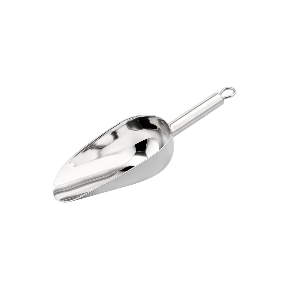 Great for ice or bulk items, Light and compact enough to fit in ice buckets and large glasses.;One-piece stainless steel construction, this scoop is a durable alternative to plastic scoops that are prone to breakage.