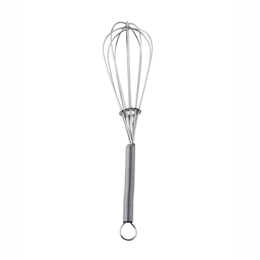 This stainless steel piano whisk is ideal for whipping of lighter sauces and batter. Its thin wire beats a large amount of air into egg whites, heavy cream, and other liquids. Made of stainless steel.