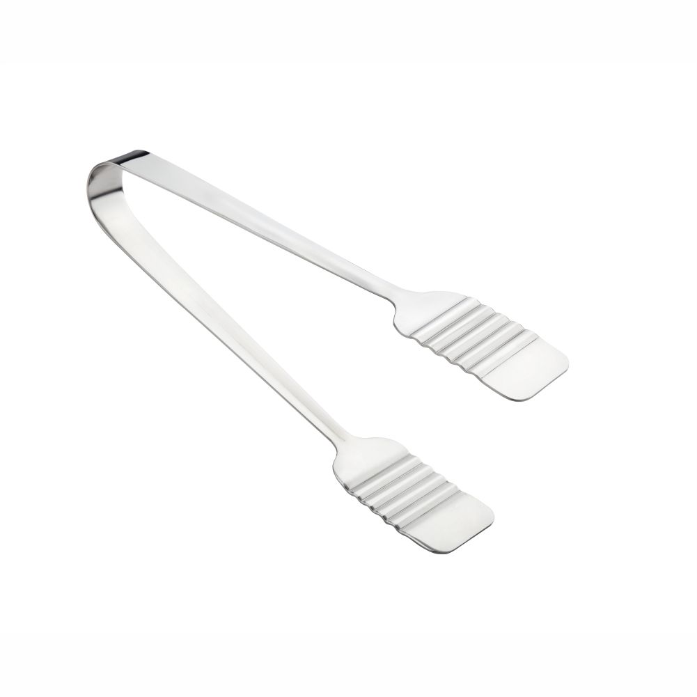 The tongs are great for events and buffets. The flat head design is ideal for serving delicate foods such as cake and pastry. The stainless steel construction is durable and good for commerical use.