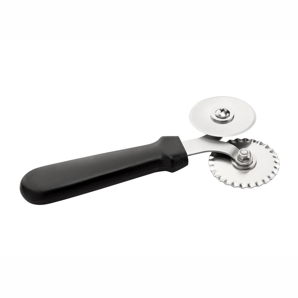 This double wheel pizza cutter provides convenience with the 2-in-1 design. The smooth edge wheel is for cutting pizzas, while serrated edge wheel to use for cutting other edible foods, such as toast, bread etc. The cutter also features a sturdy black polypropylene plastic handle with comfortability.