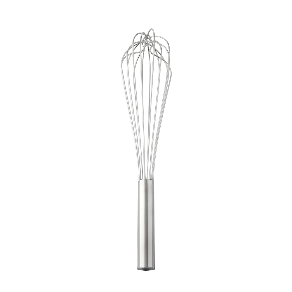 This stainless steel French whisk is built sturdy for stirring up thick batters. Designed with ergonomic handle. Made of 18/8 stainless steel, this whisk is durable and sturdy.