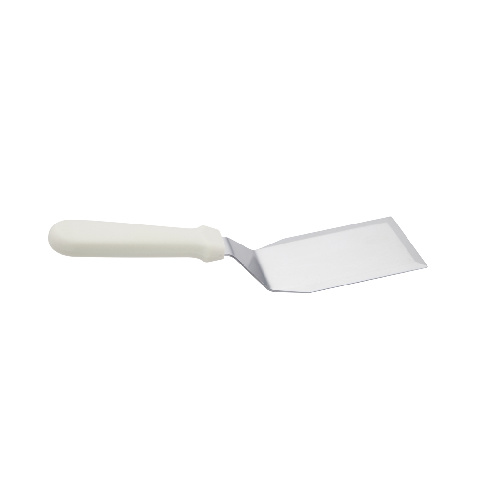 This turner is perfect for flipping burgers or turning steaks. The flexible stainless steel blade slides under the food and lift food easily. The handle made of white polypropylene is easy and comfortable to grip.