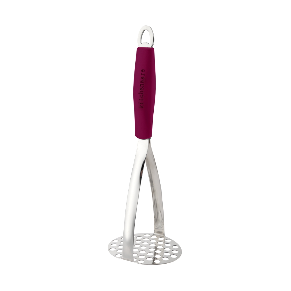 This purple silicone handled masher stands out among other kitchen tools. The spoon head is made of stainless steel for durability. The spoon handle is in non slipping silicone that keeps your hand away from heat. The hole on handle allows for easy hanging.
