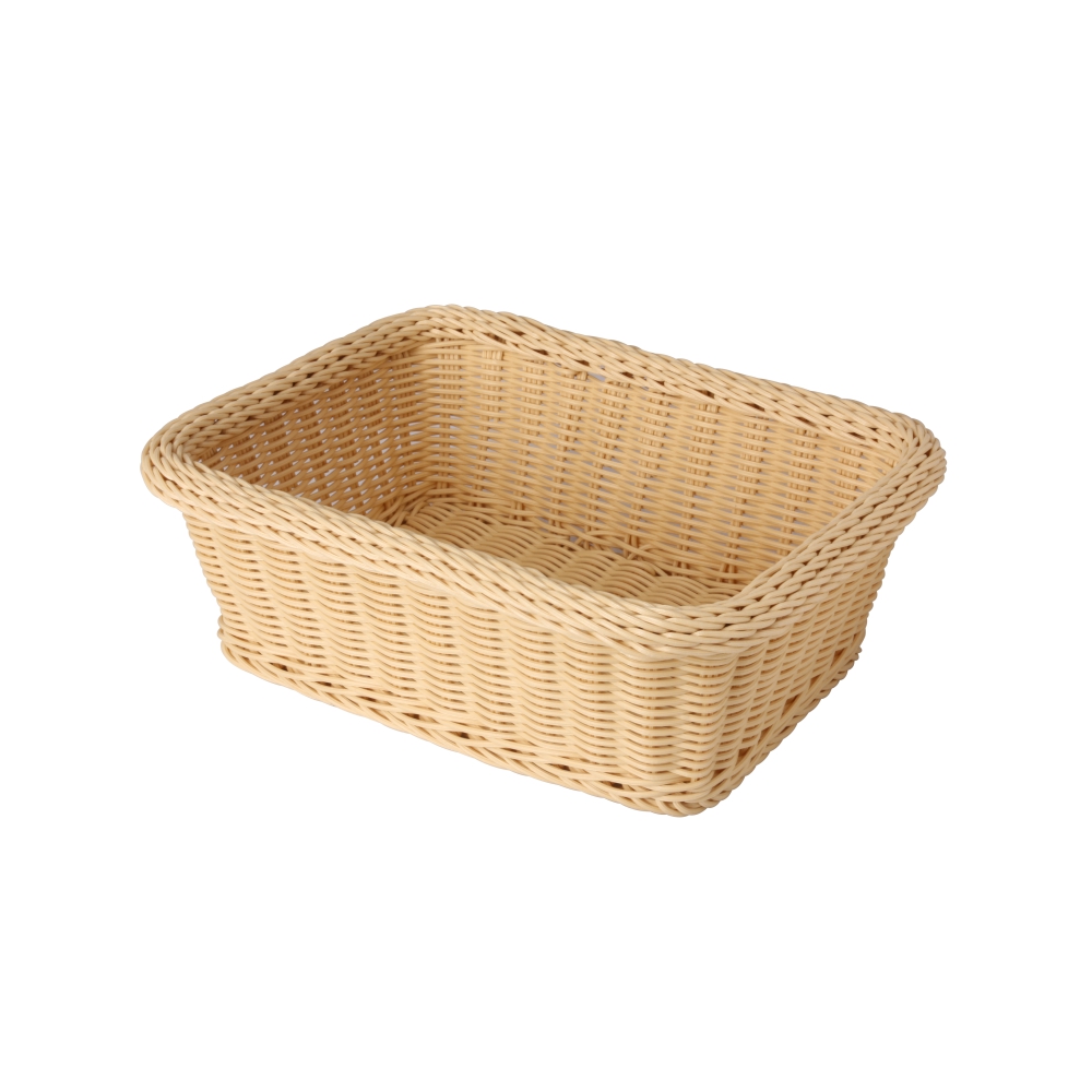Heavy Duty Polypropylene Rattan Basket, Rectangular, 37.5x28x13cm, Beige (C06 Series)