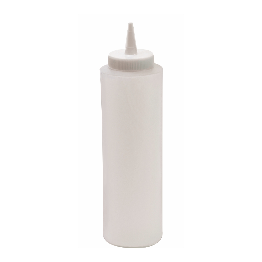 Of durable flexible plastic construction, the sauce bottle is easy to squeeze and ideal for holding condiments. The color or clear construction is a professional option for your establishment and serve a variety of condiments including ketchup, olive oil and salad dressings.