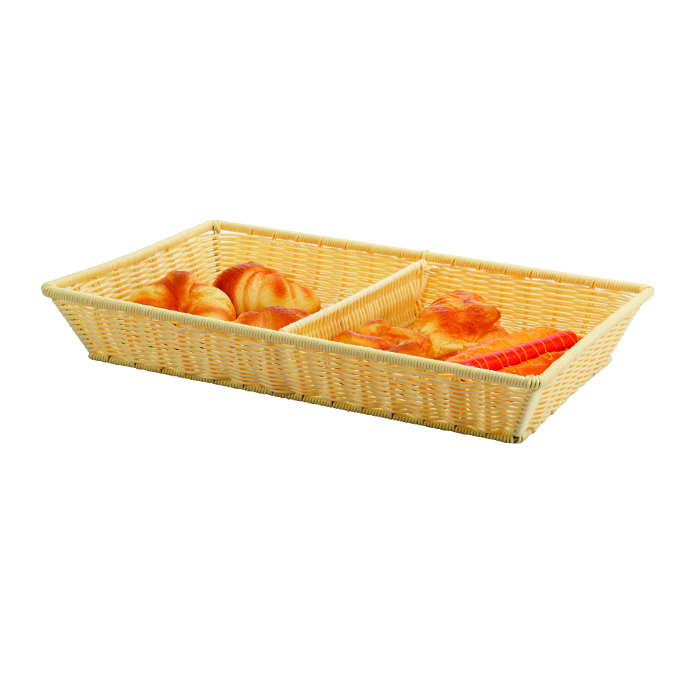 Polypropylene Rattan Basket with Two Division and Chrome Plated Wire 52.5×32.5×8.0cm Rectangular Beige (C04 Range)
