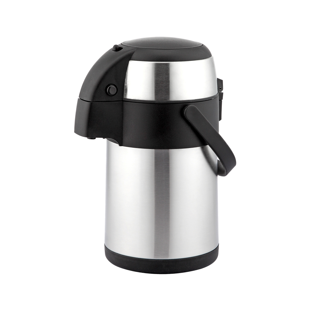 Stainless steel air pot with black plastic removable cover, black handle and push button. The air pot is easy to clean and hygienic. Capacity of 1.9L is good for serving in restaurant and party. The satin polish surface is good for preventing finger print on it.